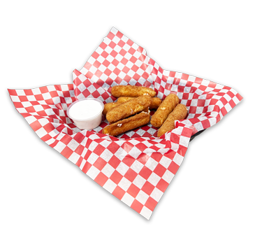 Savory and cheesy mozzarella sticks served with ranch or marinara sauce.