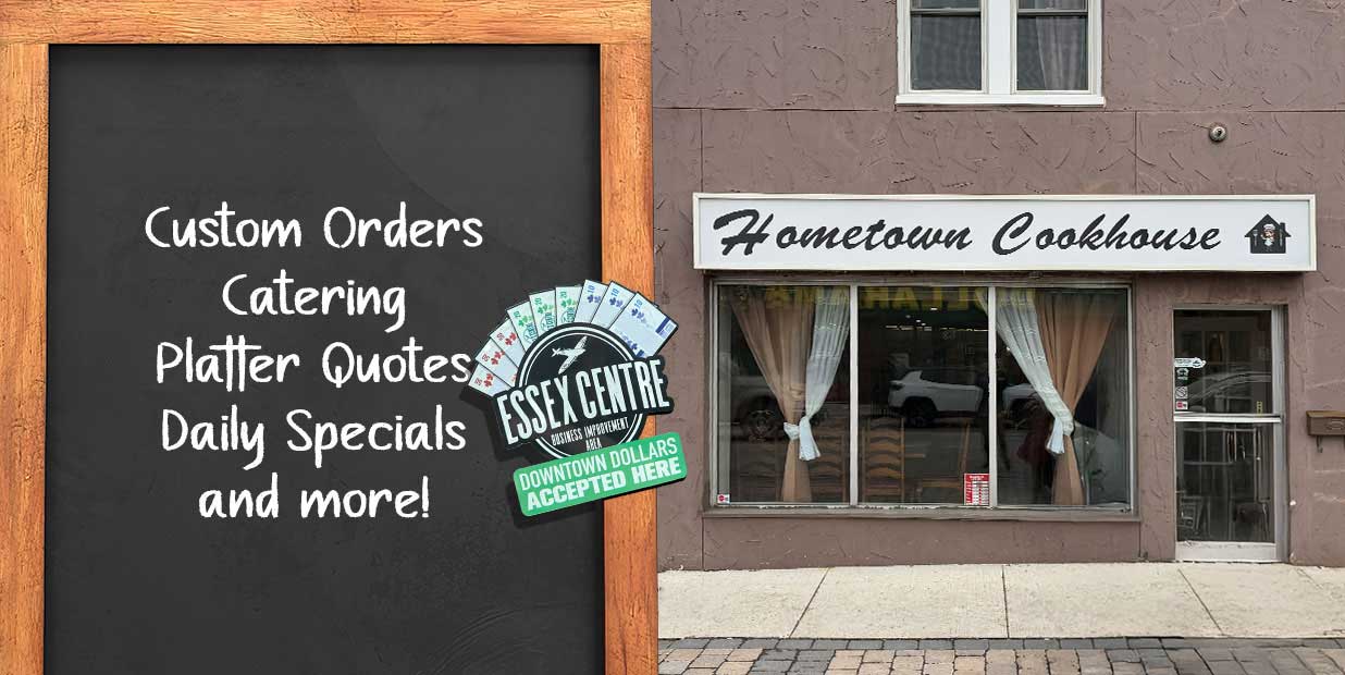 Hometown Cookhouse features your classic home cooked meals from a classic bacon and egg breakfast, to a mouth watering roast beef sandwich for lunch. Dine in with us along with your family and friends and enjoy the unique atmosphere only a home style restaurant can offer. Right here in downtown Essex, you can enjoy a delightful dinner from our available menu, or contact us to place a custom order, get a quote on a platter, or even have us cater to you! So stop on by sometime, and enjoy a home cooked meal.